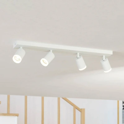 The smart home spotlight bar made of white aluminium and steel with a rectangular metal base and four adjustable spots is easy to set up and can be controlled via Bluetooth using the free AwoX app and the separately available remote control (EGLO 99099) Thanks to ZigBee + Matter technology, the smart ceiling spotlight can be controlled by voice command (Alexa or Google Nest with smart hub) using a compatible voice assistant with an integrated bridge and the light can be switched on or off remotely; control via app from home does not require a hub and is also possible offline The LEDs provide pleasant light (4x 3.7 watts, 2200 lumens); Dimensions: length 68 cm, width 10.5 cm, height 8 cm; This product is an ambient product with a light source of energy efficiency class D; Ambient products are luminaires that can be disassembled for separate inspection of the included light source(s)