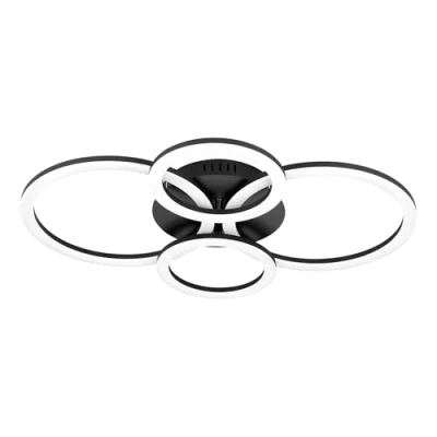 Lights.coRound, four-lamp LED ceiling light Parrapos-ZThe LED ceiling light Parrapos-Z can be effortlessly controlled via the free AwoX HomeControl app. This provides a wide range of lighting design options. The four side-by-side rings, which are made of black metal and have white plastic covers, can shine in up to 50,000 shades of white. In addition, the brightness can be regulated and there is the possibility to design different schedules, groups or even scenes.Features / Compatibility:- controllable with the free AwoX HomeControl app- compatible with smart home systems from other manufacturers that use ZigBee 3.0- direct connection with Amazon Echo and Google Home possible- increased range through additional Bluetooth mesh- up to 50 lights or illuminants simultaneously controllable- compatible with all articles of the EGLO connect-c Bluetooth series- controllable with a suitable remote control even without Internet access (see accessories)