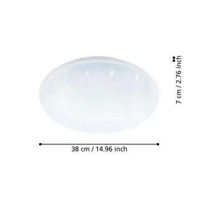 The round LED ceiling lighting has a white plastic cover with sparkling starry sky effect and can be safely used in the bathroom thanks to the splash protection (IP44). The bathroom light can be easily set up and controlled via Bluetooth with the free AwoX app and the separately available remote control (EGLO 99099) App control options: dimming, changing the colour temperature between warm white, neutral white and cool white (2700-6500 Kelvin), favourite mode, light groups, timer, night light, twilight simulation, light alarm clock, presence simulation and disco function Thanks to the ZigBee 3.0 technology, you can control the smart bathroom lamp via voice command (Alexa with Smarthub or Google Nest) with a compatible voice assistant with integrated bridge and turn the light on or off on the go; control via app from home requires no hub and is also possible offline Lights from the connect.z series can be used with the hub of other manufacturers; already purchased connect.c items can be easily integrated into the new system The LEDs provide pleasant light (4 x 4.8 watts, 2160 lumens). Dimensions of the light: height: 7 cm, diameter: 38 cm. This product is a surrounding product with an energy efficiency class F bulb. Ambient products are lights that can be disassembled for separate checking of the included light source(s) This product is a containing product. Containing products are luminaires that can be disassembled for a separate check of the light source(s) they contain. This product contains a light source of energy efficiency class f