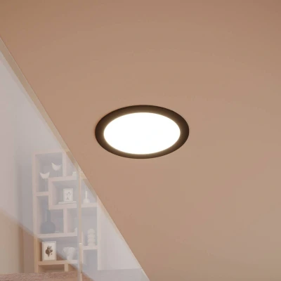 The round Smart Home LED recessed light made of black plastic with a white illuminated surface is easy to set up and control via Bluetooth with the free AwoX app and the separately available remote control (EGLO 99099); the splash-proof LED spotlight (IP44) can be used in the bathroom without any problems Thanks to ZigBee 3.0 technology, you can control the smart recessed lamp by voice command (Alexa with Smarthub or Google Nest) with a compatible voice assistant with integrated bridge and switch the light on or off while on the move; control via app from home does not require a hub and is also possible offline This product is a containing product with a light source of energy efficiency class E; containing products are luminaires that can be dismantled for separate inspection of the light source(s) they contain