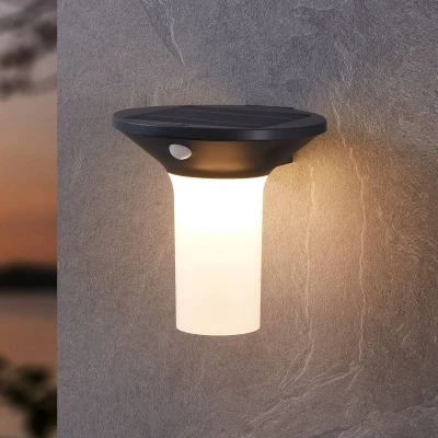 Solar-powered LED outdoor wall light Corbezzola with sensor Even in the most remote corners of the property, the solar-powered LED outdoor wall light Corbezzola brings light into the dark automatically thanks to its integrated sensor. The light is switched on at full brightness (400 lumens) for 30 seconds when movement is detected, after which it lights up continuously at a gentle 15 lumens - With integrated twilight sensor - Sensor range 8 metres - Sensor detection angle 120°