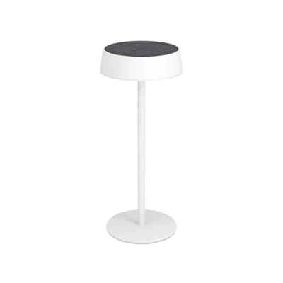 This sleek, rechargeable table lamp made of white steel charges sustainably during the day via a solar panel integrated into the lampshade - delivering energy-efficient lighting with 3 watts and 250 lumens; Alternatively, the built-in battery can be recharged using the included USB-C cable with plug, ensuring reliable operation regardless of weather conditions Thanks to its splash-proof design (IP44), this solar lamp is ideal for outdoor areas such as balconies, terraces, or gardens; At the same time, its minimalist black finish makes it an elegant addition to indoor spaces - whether on a windowsill, bedside table, or hallway sideboard Dimensions: Height: 31 cm, diameter: 13 cm, base diameter: 12 cm