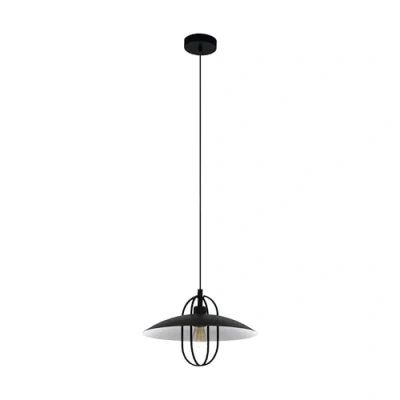 The pendant lamp made of black steel and a decorative lampshade with a white interior and a black wire frame blends seamlessly with trends such as vintage, industrial and retro When the pendant light is switched on, the wire frame on the lampshade creates a fascinating combination of light and shadow With its special design, the pendant lamp offers a highlight in any room – whether in the kitchen, in the living room or in the dining room above the dining table Bulb not included; the filament LED bulb is available separately under Eglo 110054; suitable for any bulb with E27 socket, maximum 40 watts per socket; dimmable depending on the bulb used Dimensions: maximum height: 110 cm, diameter: 38 cm