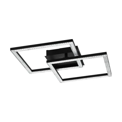 This semi-flush fitting ceiling light fixture made of black metal is equipped with two square luminous elements with a plastic crystal decor and fits elegantly into the modern trend The special design of this LED ceiling lighting blends stylishly into various living spaces, such as the kitchen, the living room, the bedroom or the corridor Dimensions: height: 7.5 cm/ 3 inches, length x width light element: 31 cm/ 12.2 inches, total length x total width: 45 cm/ 17.7 inches