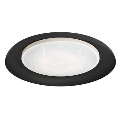 The round flush fitting LED ceiling light shade made of black metal and a white plastic cover scatters light brightly and pleasantly throughout the room creating a glittering crystal effect The LEDs of this ceiling lighting emit a warm and pleasant light (3000 Kelvin, 17.1 watts, 2010 lumens) This product is a containing product with a light source of energy efficiency class F; containing products are lighting fixtures that can be disassembled for separate inspection of the containing light source(s)