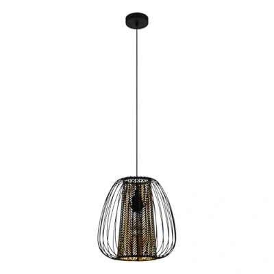 Thanks to the lampshade made of wire and textile with its inner surface plated in gold, its fine cut-outs and the black textile cable, this black metal pendant light fitting fits seamlessly into the trend When the hanging lamp is switched on, the lampshade creates a fascinating interplay of light and shadow The luminaire with its stylish design provides pleasant cozy light and a homely feel in any room, whether it be in the living room or in the dining room above the dining table The light bulb is not included in the scope of delivery. Suitable for any type of light bulb with E27 holder, maximum wattage 28 W per socket. Dimmable depending on the light bulb used Dimensions : height : 110 cm/ 43.3 inches, diameter : 33.5 cm/ 13.2 inches