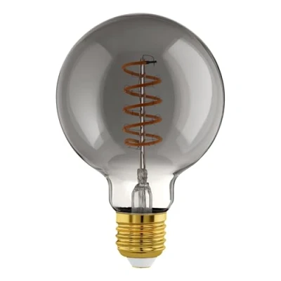 Thanks to its black and transparent steamed glass and the spiral shaped LEDs in Vintage design, the E27 LED lamp is ideal as a stand-alone light source The decorative light source is dimmable (please consider the respective dimming properties of your light); The pleasant warm light colour is ideal in rooms where you relax such as living rooms and bedrooms With its pleasant, subdued light, the decorative spiral LED light bulb sets an atmospheric light accent and thus creates a cosy atmosphere; please note that this light source is not suitable for optimally illuminating a room or for use as a reading lamp This filament LED screw bulb replaces the conventional 15 W bulb; Dimensions: length: 13.7 cm/ 5.4 in, diameter: 9.5 cm/ 3.7 in According to EU Energy Efficiency Labeling directive this decorative light bulb does not require energy labeling information