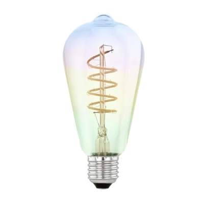 EGLO Dimmable iridescent E27 LED, multicoloured spiral filament light bulb, piston shaped Edison lamp in rainbow colours, 4 watt, 200 lumen, warm white glow, 2000 Kelvin, ST64, Ø 2.5"