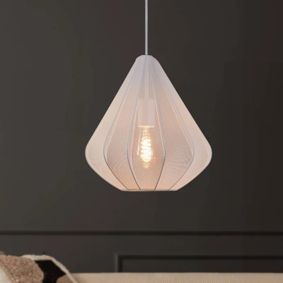 AmazonIlluminate your living spaces with a touch of Asian aesthetics with this dining table lamp in Japanese design; thanks to the special fabric cover attached to the white metal structure inside the lampshade, the minimalist pendant lamp creates an atmosphere of calm and harmony Whether above the dining table in the dining room, in the bedroom or in the living room - the hanging ceiling lamp with fabric shade gives your home a special ambience Dimensions: Diameter: 33.5 cm, height: 110 cm