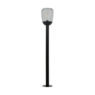 The decorative outdoor floor lamp is made of black cast aluminium and a clear glass lamp head The weather-resistant outdoor light is splash-proof (IP44). This means that it is safe to use outdoors such as garden, driveway, paths or entrance area The vintage design of the floor lamp blends stylishly into the outdoor area and creates a welcoming atmosphere No bulb included; the filament LED bulb is sold separately under EGLO 110012; suitable for any bulb with E27 socket, maximum 60 watts per socket Dimensions: height: 99 cm, diameter: 15.5 cm