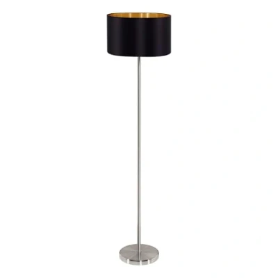 Eglo E27 Matt Black/Gold Fabric Floor Lamp with Foot Switch 'MASERLO'