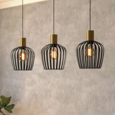 EGLO Empoli pendant light, black/brass coloured, 3 bulb.