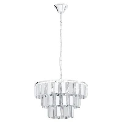 The decorative pendant light with a variety of alternating crystal and chrome-plated steel plates blends elegantly into the modern trend When switched on, the high-quality crystal elements create a sparkling and elegant appearance With its special design, the pendant lamp offers a highlight in any room - whether in the kitchen, in the living room or in the dining room above the dining table No bulbs included; the LED bulbs are available separately under Eglo 11602 Suitable for any bulb with E14 socket, maximum 40 watts per socket. Dimmable depending on the bulb used