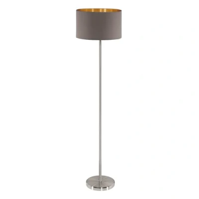 Eglo Floor Lamp Maserlo, 1 Bulb Fabric Standing Lamp, Made of Steel and Fabric, Colour: Nickel Matt, Cappuccino, Gold, Socket: E27, incl. Step Switch