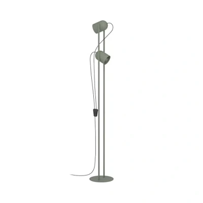 The loden green steel standing lamp with two spotlights arranged one above the other that can be swivelled up and down provides targeted lighting in the room as a reading lamp or corner lamp The spotlights on the living room floorlamp can be controlled separately via two switches on the 170 cm long cable Dimensions: Length: 12.5 cm, width: 13 cm, height: 142.5 cm