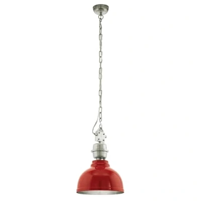 Eglo Grantham Pendant Lamp, Dining Table Light, Steel in Red, Chrome, E27 Socket