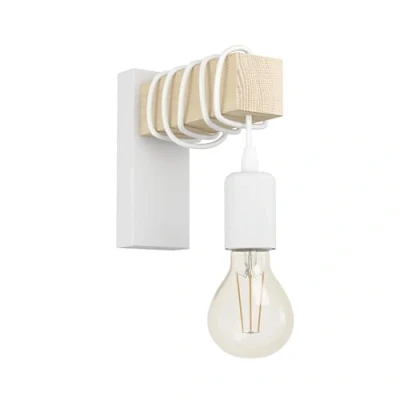 Eglo Indoor Wall Light Townshend, Vintage lamp in Industrial Design, Retro Lighting Made of Steel and Wood, Colour White, Brown, Socket E27, FSC Certified