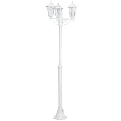 Eglo Laterna 5 Lamppost, 3 Flame Victorian Style Outdoor Lantern, White Cast Aluminium and Glass Garden Driveway Lighting, E27 Socket, IP44