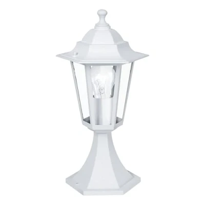 This weatherproof post light for garden is splash-proof (IP44); This means that the mains powered lamppost can be used without hesitation in outdoor areas such as gardens, terraces, garages, garden sheds, paths, driveways or entrances The housing of the garden light is made of sturdy cast aluminium; The material ensures durability, protects against rust and gives the exterior lighting a noble appearance The pier mounted standing light impresses at first glance with its classic design and the shape of a lantern; The outside walkway lamp is crafted in white and features many filigree details The depicted filament light bulb is not included in the scope of delivery and is available separately (product EGLO 11932); Suitable for any type of light bulb with E27 holder, maximum wattage 60 per socket Dimensions: height: 38.5 cm/ 15.2 inches, diameter lamp stand: 73 cm/ 6.7 inches, diameter lamp shade: 19.5 cm/ 7.7 inches