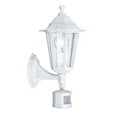Eglo Laterna 5 Outdoor Wall Light, Motion Sensor Porch Lamp, White Cast Aluminium and Glass Exterior E27 Socket, IP44
