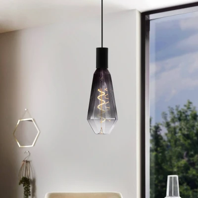 Amazon MarketplaceThe oversized E27 decorative bulb made of coated glass is a real eye-catcher thanks to its atmospheric gradient in grey and black as well as the spiral-shaped LEDs; dimensions: width: 10 cm, length: 24.5 cm The prism-shaped LED bulb (T100) provides pleasant warm white light (1800 Kelvin) and is dimmable (please consider the dimming characteristics of your fixture) According to the EU directive on energy labelling, this decorative light source does not require an energy label