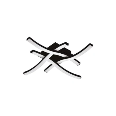 The distinctive living room lamp with its four crossed, wavy rods made of black steel with white plastic light surfaces harmonises particularly well with modern furnished living spaces The energy-saving LEDs provide bright neutral white light (20 watts, 2400 lumens, 4000 kelvin); The neutral white light colour of the ceiling light is ideal for workspaces where good illumination is necessary Dimensions: length 40 cm, width 40 cm, height 7.5 cm