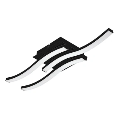The distinctive desk lamp with its three parallel, wave-shaped rods made of black steel with white plastic light surfaces harmonises particularly well with modern furnished living spaces The energy-saving LEDs provide bright neutral white light (14.1 watts, 1800 lumens, 4000 kelvin); the neutral white light colour of the ceiling light is ideal for workspaces where good illumination is required Dimensions: length 43.5 cm, width 11 cm, height 7.5 cm