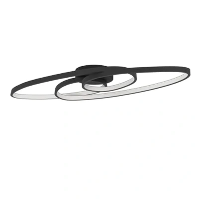 The black steel ceiling lamp is fitted with curved LED profiles and can be perfectly integrated into modern interiors thanks to its stylish design The energy-saving LEDs emit a pleasant warm white light (38 watts, 4400 lumens); the light can be dimmed in three stages using a light switch Dimensions: Length: 88 cm, width: 30 cm, height: 8 cm