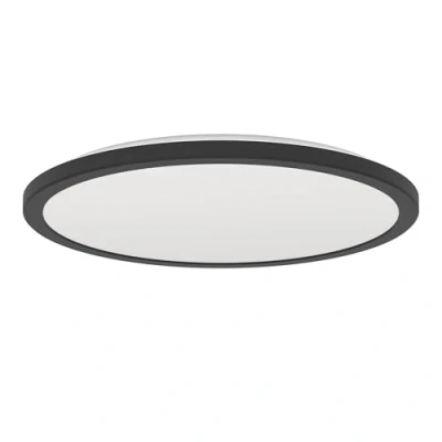 The round LED panel made of black plastic with a white illuminated surface is a stylish eye-catcher that blends seamlessly into your modern interior Thanks to IP44 protection, you can be sure that the LED light is protected against splashing water - ideal for use as a bathroom lamp This product is a containing product with a light source of energy efficiency class E; containing products are luminaires that can be dismantled for separate inspection of the light source(s) they contain