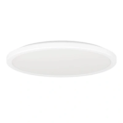 The round LED panel made of white plastic with a white illuminated surface provides timeless lighting in your home Thanks to IP44 protection, you can be sure that the LED light is protected against splashing water - ideal for use as a bathroom lamp This product is a containing product with a light source of energy efficiency class E; containing products are luminaires that can be dismantled for separate inspection of the light source(s) they contain