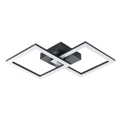 This decorative living room lamp made of black steel with two stylish, square light elements and white LED covers integrates seamlessly into any modern living concept The energy-saving surface-mounted light provides a pleasant warm light (2x 11 watts, 2760 lumens, 3000 kelvin); the warm white ceiling lighting creates a cosy atmosphere wherever comfort and a relaxing ambience are needed This product is a containing product with a light source of energy efficiency class E; containing products are lighting fixtures that can be disassembled for separate inspection of the containing light source(s)