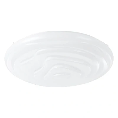 The decorative surface-mounted light has a round, white plastic light surface with organically shaped highlights and a white metal base and harmonises particularly with modern style furnishings With its diameter of 48 cm, the round LED panel offers timeless lighting for any room - whether in the kitchen, living room, bedroom or hallway The included remote control allows you to change the colour temperature between warm white, neutral white and cool white (3000 - 6500 Kelvin) as well as the dimming of the living room lamp; In addition, the remote control has additional comfort functions, such as night light and a timer (turn off after 30 minutes) This product is an surrounding product; ambient products are lights that can be disassembled for separate checking of the included light source(s) Dimensions: height: 10 cm, diameter: 48 cm This product is a containing product. Containing products are luminaires that can be disassembled for a separate check of the light source(s) they contain. This product contains a light source of energy efficiency class f