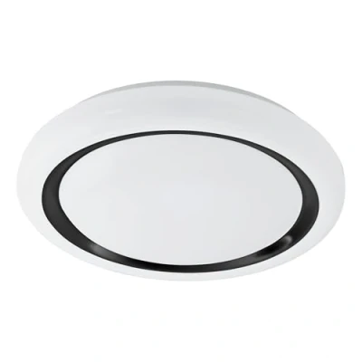 The surface-mounted light consists of a round, white plastic cover, as well as a black ring, which is located between the two light surfaces and skilfully rounds off the modern design With its diameter of 48 cm, the minimalist ceiling lamp offers classic lighting for any room - whether in the kitchen, living room, bedroom or hallway Thanks to the integrated LEDs, the lighting provides pleasant warm light (3000 Kelvin, 19.5 watts, 2200 lumens); the warm white light colour of the LED light is suitable for anywhere where a cosy atmosphere should be created This product is an surrounding product; ambient products are lights that can be disassembled for separate checking of the included light source(s) Dimensions: height 6 cm, diameter 48 cm This product is a containing product. Containing products are luminaires that can be disassembled for a separate check of the light source(s) they contain. This product contains a light source of energy efficiency class f