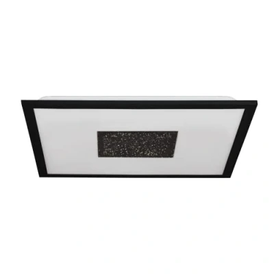 The surface-mounted light made of black metal with a square, white plastic cover looks particularly high-quality thanks to the black light element with starry sky effect and the optical floating effect The timeless ceiling lamp offers modern lighting for any room - whether in the kitchen, living room, bedroom or hallway Thanks to the integrated LEDs, the LED light provides pleasant warm light (3000 Kelvin, 19/9 Watt, 2400/1200 lumens); by pressing the wall switch, you can choose between main light, night sky light in the middle or both at the same time This product is an surrounding product; ambient products are lights that can be disassembled for separate checking of the included light source(s) LED panel dimensions: length: 44.5 cm, width: 44.5 cm This product is a containing product. Containing products are luminaires that can be disassembled for a separate check of the light source(s) they contain. This product contains a light source of energy efficiency class e