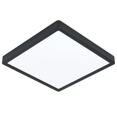 Eglo LED Flush Ceiling Light Fueva 5, 11 inches, Square Bathroom Lighting Made of Black Metal and White Plastic, Neutral lamp, IP44