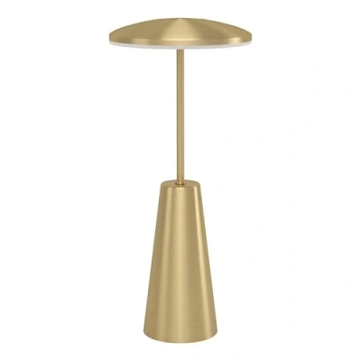 Thanks to its rechargeable battery operation and IP54 protection rating, the elegant balcony lamp with its metal body made of brushed brass-coloured steel and white plastic light surface can be placed anywhere, not only indoors but also outdoors The table lamp can be switched on and off and dimmed by touch using the touch dimmer; the light colour of the outdoor light can also be individually adjusted from warm white to neutral white (2400 Kelvin, 3000 Kelvin, 4000 Kelvin) The battery-operated bedside lamp has an integrated rechargeable battery and can be charged via the USB port The cordless outdoor light has an output of max. 2.8 watts and 270 lumens and is ideal as a patio lamp or balcony light Dimensions: Diameter: 13 cm, height: 28 cm