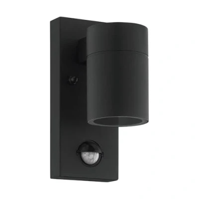 EGLO LED Outdoor Wall Light Riga 5 with Motion and Twilight Sensor, External Porch Lighting, Waterproof Outside Lamp Made of Black Galvanized Steel Clear Glass, Gu10 Socket, IP44