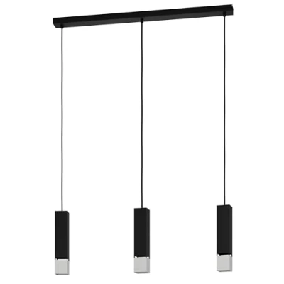 Eglo LED Pendant Lighting Butrano, 3 Bulb Minimalist Ceiling Light Fitting Made of Black and Silver Metal, Hanging lamp for Dining Living Room, Warm White, GU10 Socket