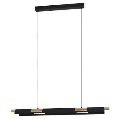 The pendant light fixture consists of a natural-coloured rubber wood profile, black metal and white plastic LED covers and fits seamlessly into the modern trend The suspended LED luminaire with its special design particularly catches the eye and is a highlight in any room – whether it be in the living room or in the dining room above the dining table Dimensions: height: 110 cm/ 43.3 inches, length: 100 cm/ 39.4 inches, width: 16.5 cm/ 6.5 inches