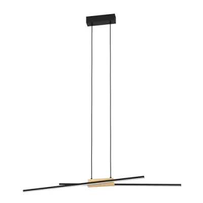 The decorative dining table lamp with its two light arms made of black aluminium in the shape of long rods with natural, FSC-certified wooden appliqué and a black metal canopy blends seamlessly into the modern trend With its rod-shaped design, the linear pendant lamp offers a special eye-catcher in the living room, bedroom or dining room over an elongated dining table Thanks to the integrated LEDs, the LED panels provide pleasant warm light (3000 Kelvin, 2 x 13 Watt, 3120 lumens); the warm white light colour of the LED light is suitable for anywhere where a cosy atmosphere should be created Dimensions: length: 93.5 cm, width: 7.5 cm, height: 110 cm This product is an surrounding product with an energy efficiency class E bulb. Ambient products are lights that can be disassembled for separate checking of the included light source(s) This product is a containing product. Containing products are luminaires that can be disassembled for a separate check of the light source(s) they contain. This product contains a light source of energy efficiency class e