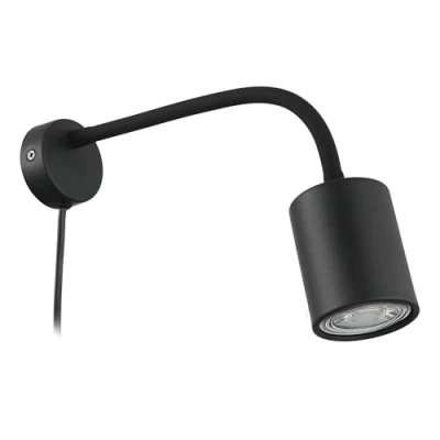 The flexible wall spotlight made of black steel provides targeted light in the living room, bedroom, or office thanks to its bendable neck The illustrated LED GU10 bulb is included in the delivery and provides pleasant warm white light at 3000 Kelvin, 250 lumens, and 2.8 watts power This product is a containing product with a light source of energy efficiency class F; containing products are lighting fixtures that can be disassembled for separate inspection of the containing light source(s)