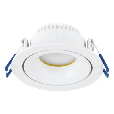 The recessed light made of aluminium and plastic in white impresses with a simple design and colourful accent; thanks to the included decorative rings in different colours, the ceiling lighting can be individually matched to your home decor With 4.9 watts, 550 lumens and 3000 kelvin, the LED spotlight provides warm white light for a pleasant, even illumination with high energy efficiency; the light can be dimmed in three stages by repeatedly pressing the light switch This product is an enclosing product with a light source of energy efficiency class E; enclosing products are luminaires that can be disassembled for separate inspection of the contained light source(s)