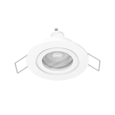 The round recessed light made of white plastic is equipped with a GU10 bulb and can be easily installed in suspended ceilings with 6.4–6.8 cm ceiling cutouts using a clamp The recessed spotlight delivers 345 lumens at 4.5 watts and provides bright, functional lighting with its neutral white light (4000 kelvin) for bathrooms or work areas This product is a containing product with a light source of energy efficiency class F; Containing products are luminaires that can be disassembled for separate inspection of the contained light source(s)