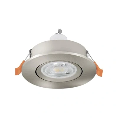 The round recessed light made of silver-coloured plastic is equipped with a GU10 bulb and can be easily installed in suspended ceilings with 6.8–7.5 cm ceiling cut-outs thanks to the clamp Thanks to its swivel mount, the LED spotlight can be individually adjusted, allowing for flexible lighting design This product is an containing product with a light source of energy efficiency class F; containing products are luminaires that can be disassembled for separate inspection of the contained light source(s)