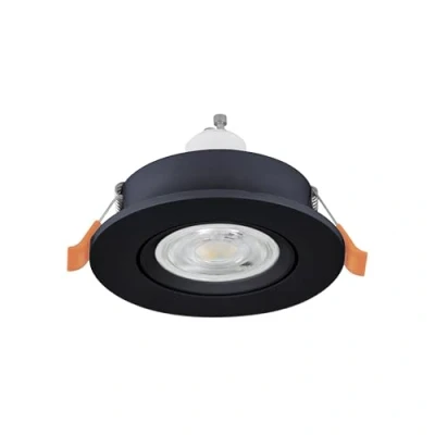 The round recessed light made of black plastic is equipped with a GU10 bulb and can be easily installed in suspended ceilings with 6.8–7.5 cm ceiling cutouts thanks to the clamp Thanks to its swivelling mount, the LED spotlight can be individually adjusted, allowing for flexible lighting design This product is an containing product with a light source of energy efficiency class F; containing products are luminaires that can be disassembled for separate inspection of the contained light source(s)