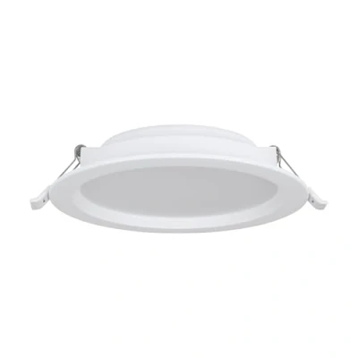 The round recessed light made of white plastic features a simple design and is suitable as an LED spotlight for the ceiling in the hallway, living room or bedroom With 12 watts power, 1360 lumens and 3000 kelvin, the recessed spotlight produces a warm white light that creates a cosy atmosphere indoors This product is a containing product with a light source of energy efficiency class E; Containing products are luminaires that can be disassembled for separate inspection of the included light source(s)