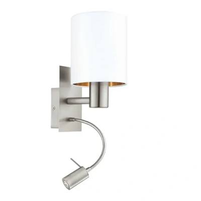 EGLO LED wall lamp Pasteri, light fixture with reading lamp, steel in nickel mat and fabric white copper, socket E27
