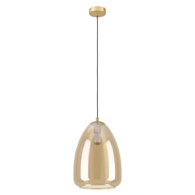 The suspended ceiling light fixture consists of an organically-shaped, smoked glass lampshade in an amber colour, suspended on a black cable from a round metal canopy in a brushed brass finish, and blends into almost any modern interior The pictured filament LED bulb is not included in the scope of delivery and is available separately under EGLO 110001 Dimensions: height: 110 cm/ 43.3 in, diameter: 30 cm/ 11.8 in