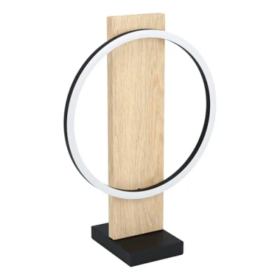 The LED table lamp made of an FSC-certified oak veneer wood beam in natural colours, a black metal base and a circular light element made of black steel with an LED cover made of high-quality plastic in white fits seamlessly into the modern trend With its special design, the LED table lamp is a highlight in any room - whether in the living room, bedroom or hallway Dimensions: Height: 42.5 cm, Length: 30 cm, Width: 15 cm; This product is a containing product with a light source of energy efficiency class E; containing products are luminaires that can be disassembled for separate inspection of the light source(s) they contain