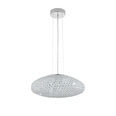The steel pendant light in chrome with a decorative lampshade made of sparkling clear crystals held by a subtle metal frame blends elegantly into the modern trend When the pendant lamp is switched on, the lampshade creates a fascinating interplay of light and shadow With its special design, the pendant lamp offers a highlight in any room - whether in the kitchen, in the living room or in the dining room above the dining table No bulb included; the LED bulbs are sold separately under EGLO 11595 Suitable for any bulb with E27 socket, maximum 60 watts per socket; dimensions: height: max. 110 cm, diameter: 54 cm